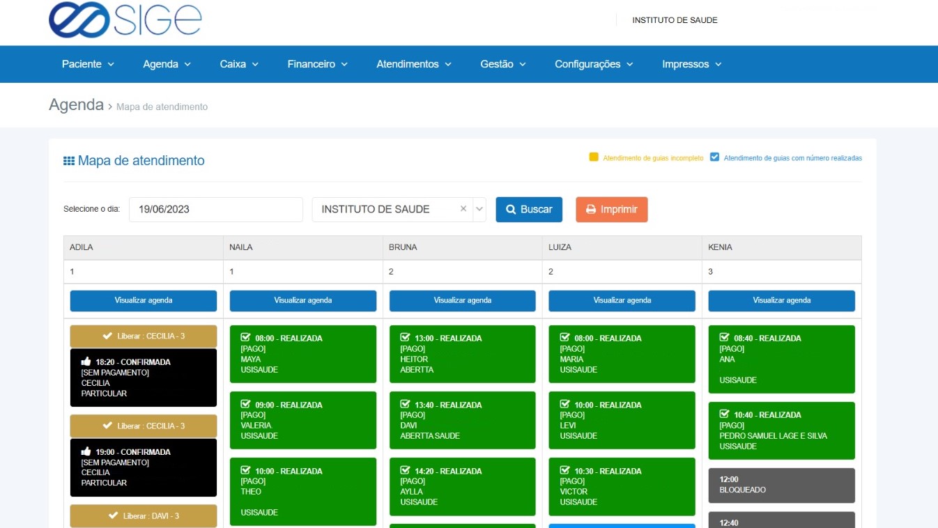 Aqui você consegue realizar a evolução do atendimento dos pacientes de vários profissionais ao mesmo tempo.